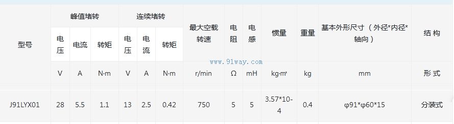 J91LYX01型永磁式直流力矩電動機