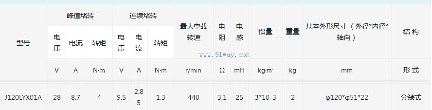 J120LYX01A型永磁式直流力矩電動機