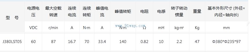 J380LST05型無刷直流力矩電動機