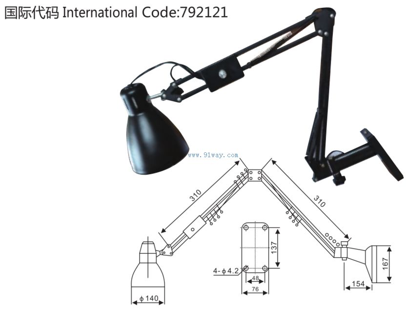 2 墻壁式安裝,燈具可上下、左右、前后任意調節,配有調光器,可作無