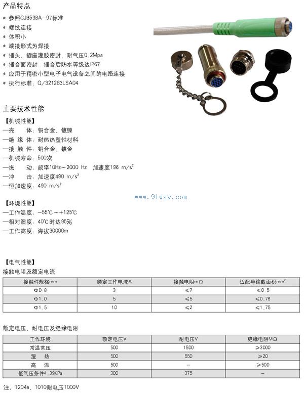 YQ12小圓形電連接器主要適用于低壓信號 連接,采用螺紋連接,插頭、插座灌膠密封,該產品具有頭座插好后防雨淋的特點。