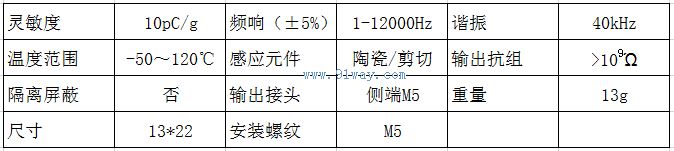 EHZ-105壓電加速度傳感器參數