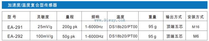 四、HZ-291加速度(溫度)復合型傳感器技術參數