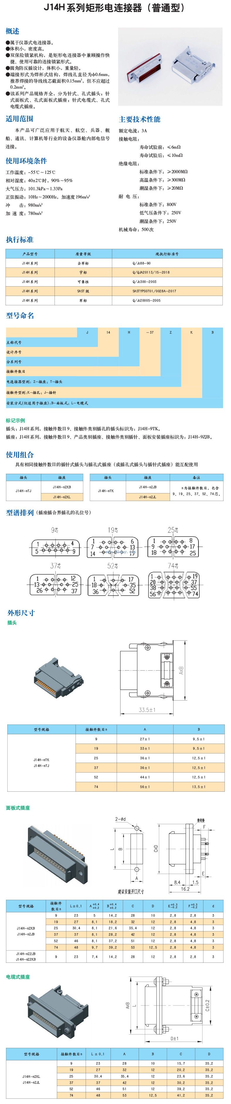| 產品名稱: | J14H系列矩形電連接器(普通型) | |||||