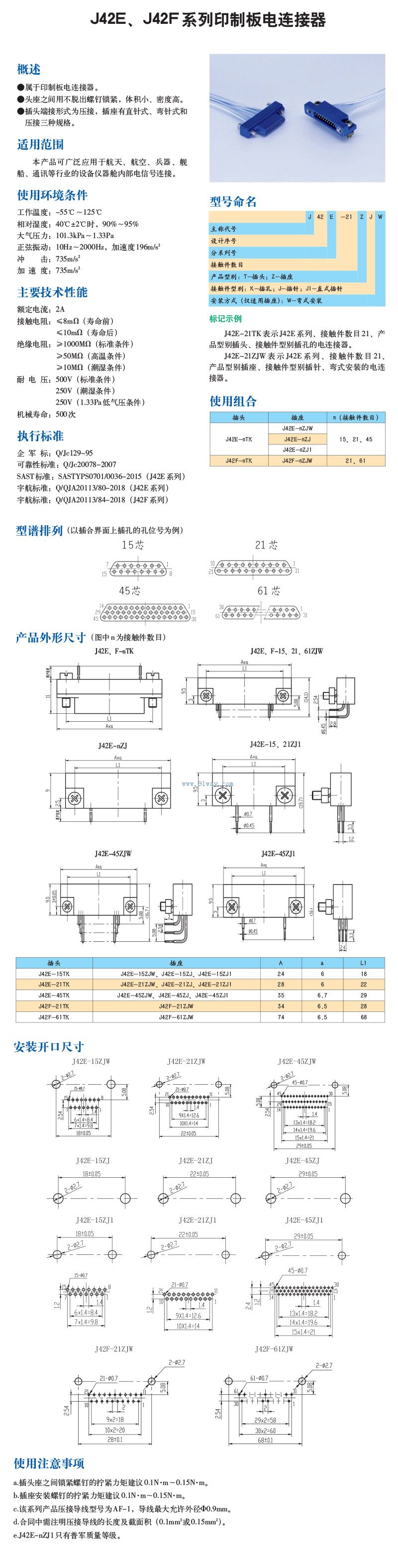 J42E,J42F系列印制板電連接器