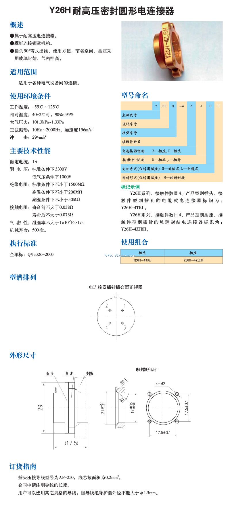 Y26H耐高壓密封圓形電連接器