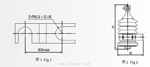 Y2.5W系列金屬氧化物避雷器主要技術(shù)參數(shù) 產(chǎn)品性能符合GBll032的規(guī)定。 外形和安裝尺寸見圖1和圖2