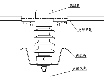 6.2將絕緣罩中的放電環取出,套在絕緣子上帽上,絕緣子及引弧板牢固地固定在安裝支架上,并保證引弧板與架空絕緣電纜保持平行。