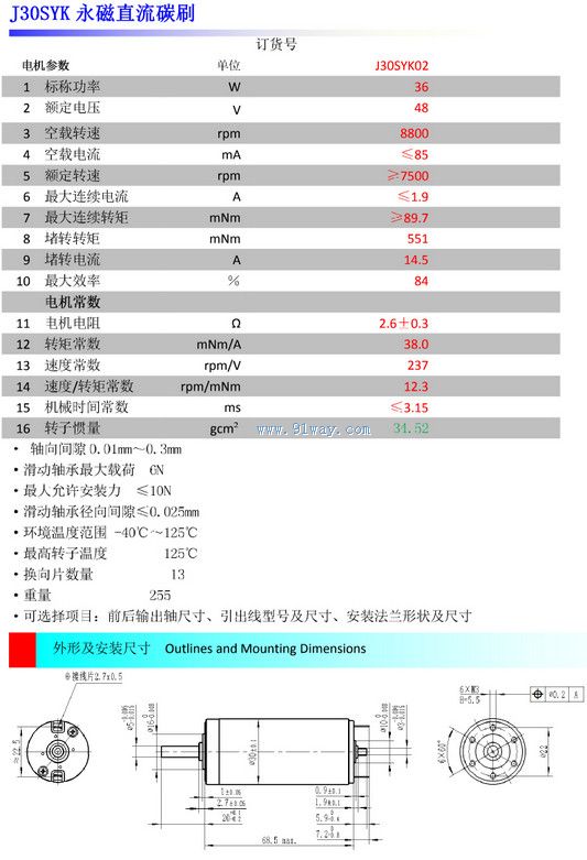 J30SYK02型直流空心杯電機