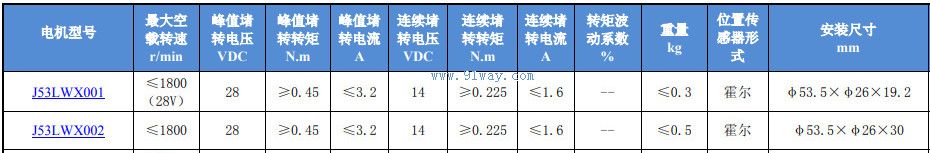 J53LWX001,J53LWX002型無刷直流力矩電動機