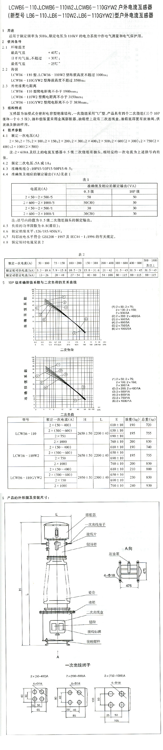 | 產品名稱: | LCWB6-110(W2),LCWB6-110GYW2系列電流互感器 | |||||