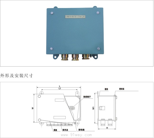 說明: 序號3~6中(W)兩種尺寸為接線箱中單路接線端子和雙路接線端子。序號1~6中(H)兩種尺寸為接線箱中單行填料函排列和雙行填料函排列。 |