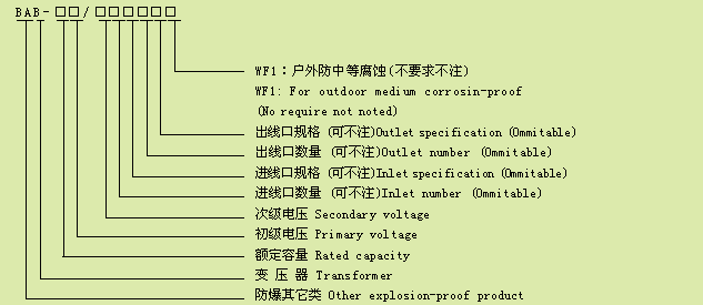 | 產品名稱: | BAB系列防爆變壓器(Ⅱ B) | |||||