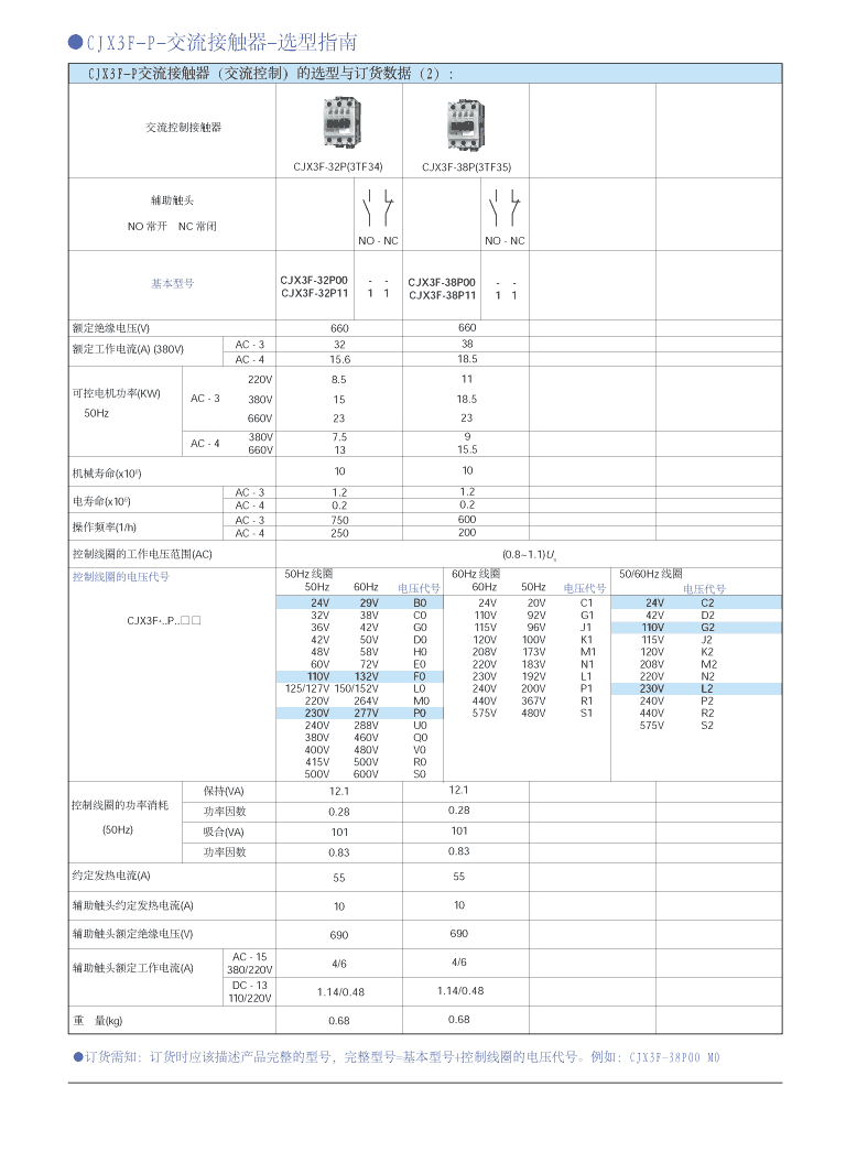 CJX3F-P(3TF3.) 系列交流接觸器適用于接通與分斷三相交流電動機、電加熱、電燈等用電設備。 AC-3 使用類別, 380V 時額定工作電流到 38A 。線圈控制電源可以是交流( AC )或直流( DC )。