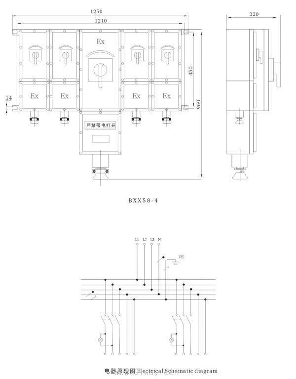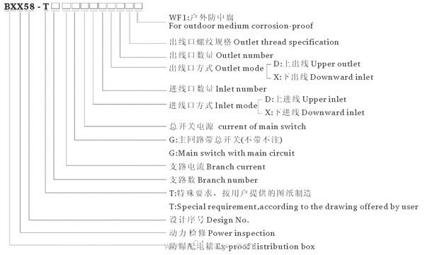 | 額定電壓(A)Rated voltage | 主回路額定電流(A)Rated current of main circuit | 支路數 Branch number | 支路電流(A)Branch main current | 防爆標志Explosion-proof mark |