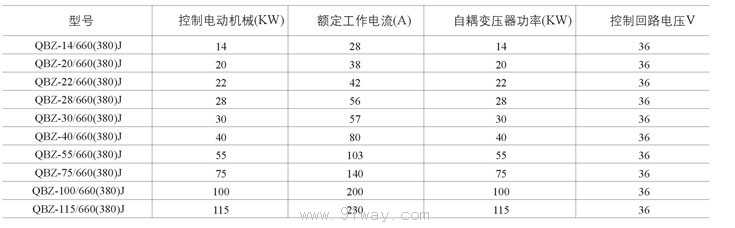 QBZ-J系列礦用隔爆型自耦減壓真空電磁起動器技術參數