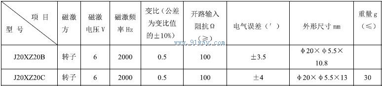 J20XZ20,J20XZ20A型正余弦旋轉變壓器技術參數
