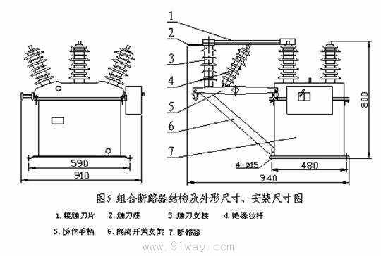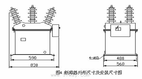 4ZW8-12型戶外高壓真空斷路器外形及安裝尺寸
