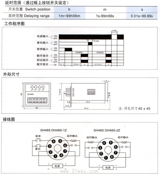 SH48S(DH48S)是引進(jìn)國(guó)外進(jìn)技術(shù),采用先進(jìn)大規(guī)模專(zhuān)用集成和LED數(shù)碼管顯示,參照國(guó)外工藝標(biāo)準(zhǔn),可代替OMRON公司H5CN及同類(lèi)產(chǎn)品,外形美觀,延時(shí)范圍寬、精度高、功耗低壽命長(zhǎng),觸頭容量大等優(yōu)點(diǎn),使用于自動(dòng)化控制系統(tǒng)控制元件之用。