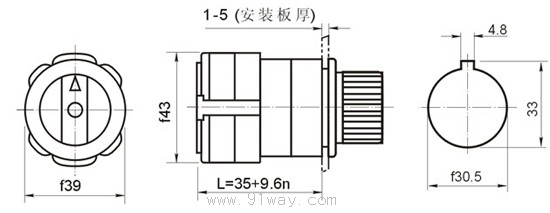 注2:直接控制電動機用轉換開關一般采用60°轉換,代號SN時采用45°轉換。