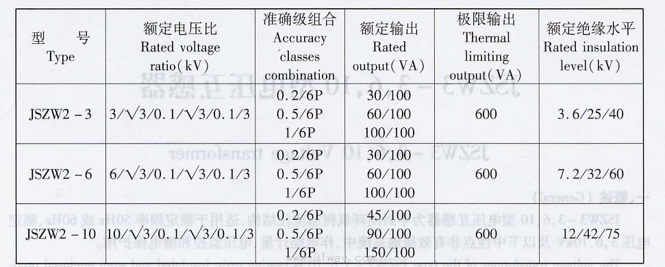 JSZW2-3,JSZW2-6,JSZW2-10系列電壓互感器
