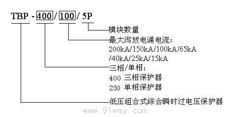 TBP-230系列低壓組合式綜合瞬時過電壓保護器型號說明