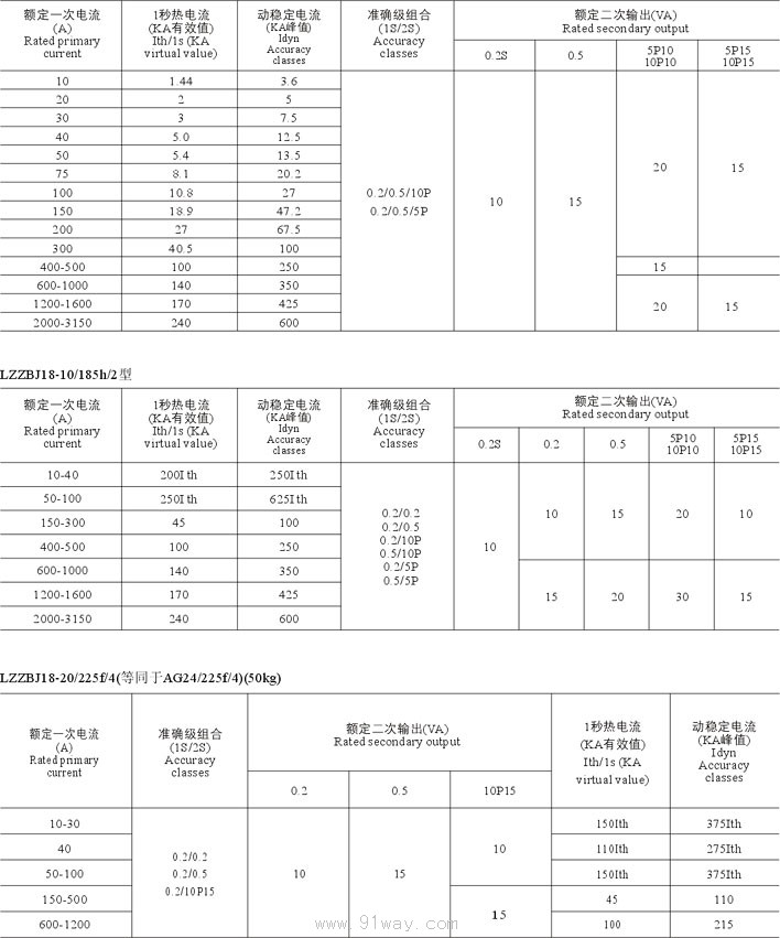 LZZBJ18-10(G)/150/185,,20/225/180電流互感器技術(shù)參數(shù)