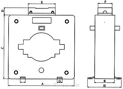 外殼由阻燃ABS塑料材料制造,二次電輸出的端子有端子保護蓋。用于互感器安裝的配件有三件。