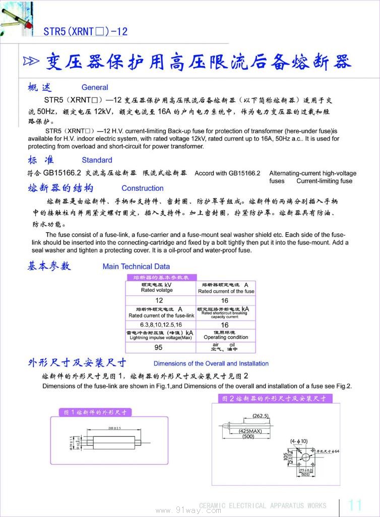 STR5-12型變壓器保護用高壓限流后備熔斷器