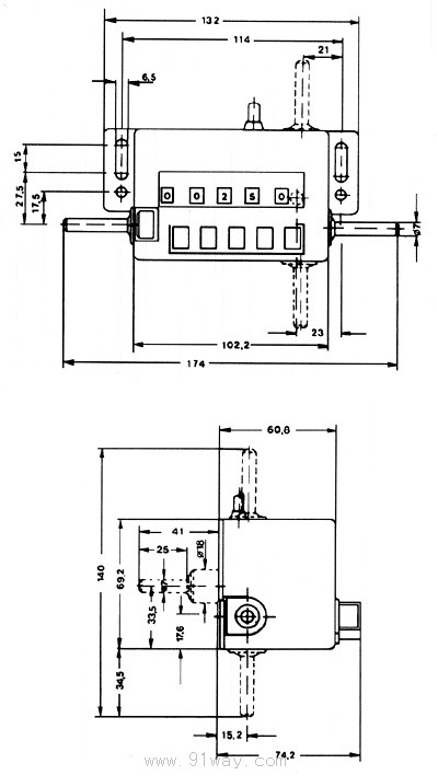 J250系列五位機械預置計數器主要分轉動和拉動兩大類,適用于控制機器或儀器的轉動或行程。按下計數器左邊的一個按鍵,即可將所需的數值通過順次按動其余的五個按鍵輸入到計數器內。放松左邊的按鍵,計數器即顯示出你所選定的數值。(其中帶預置的,當計數器數字顯示到“00000”時,計數器發出信號控制機器或儀器停止工作)。