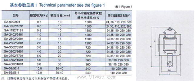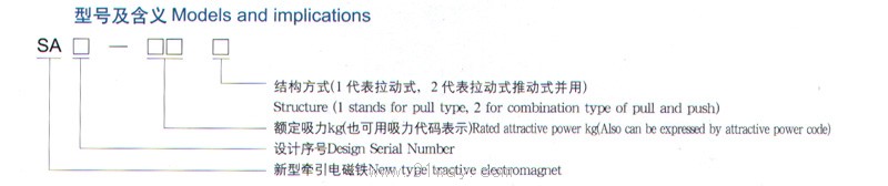 SA系列交流牽引電磁鐵,專利號ZL00251767.1,是高質量交流牽引電磁鐵的最新成果,由于產品采用優質硅鋼片,澆注密封線圈,提高了產品的絕緣性能、安全可靠、外形美觀,體積小,重量輕,吸合釋放快,耗電省,主要適用于交流50Hz或60Hz,額定電壓至415V的電路中,作為機械設備自動化系統和各種操作機構的遠近距離等控制之用,產品符合GB14048.5標準。線圈控制電壓也可做成直流。