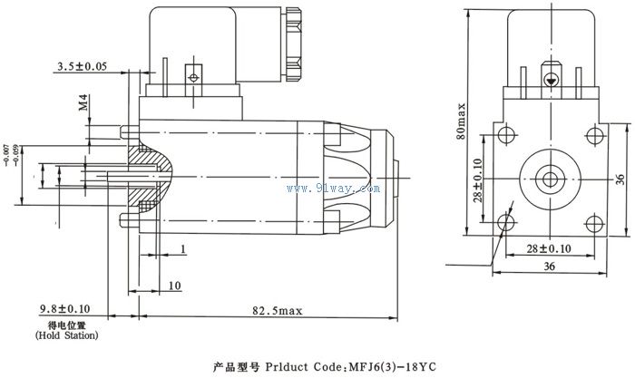 MFJ6-18YC交流濕式閥用電磁鐵 額定電壓:AC 220、110V 額定吸力:18N 額定行程:2.8mm 工作油壓:16MPA 安裝尺寸:28×28mm