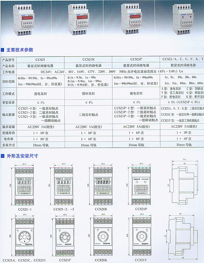 CCS21/A、C、G、F、K、Y系列數顯式時間繼電器詳細信息: