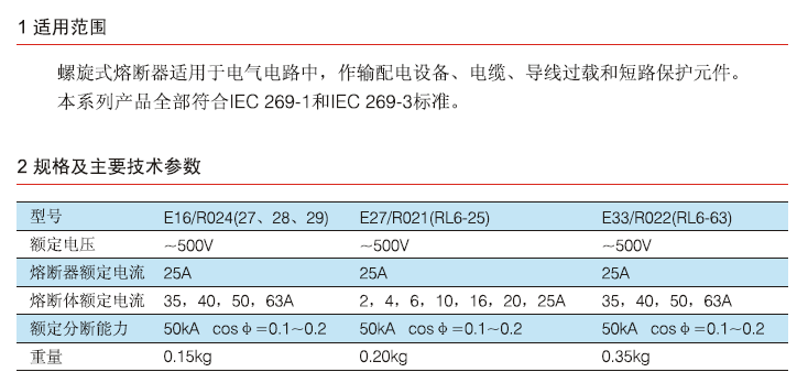 RO21、RO22、RO24、RO26系列螺旋式熔斷器