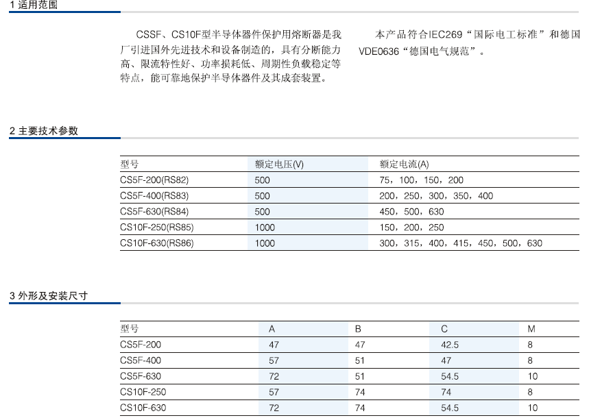 CS5F、CS10F系列半導體器件保護用熔斷器