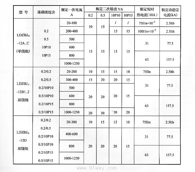 額定一次電流,準確級組合及相應的額定輸出,動熱穩定電流見表:(可制作測量級為 0.2S , 0.5S 的高精度電流互感器)
