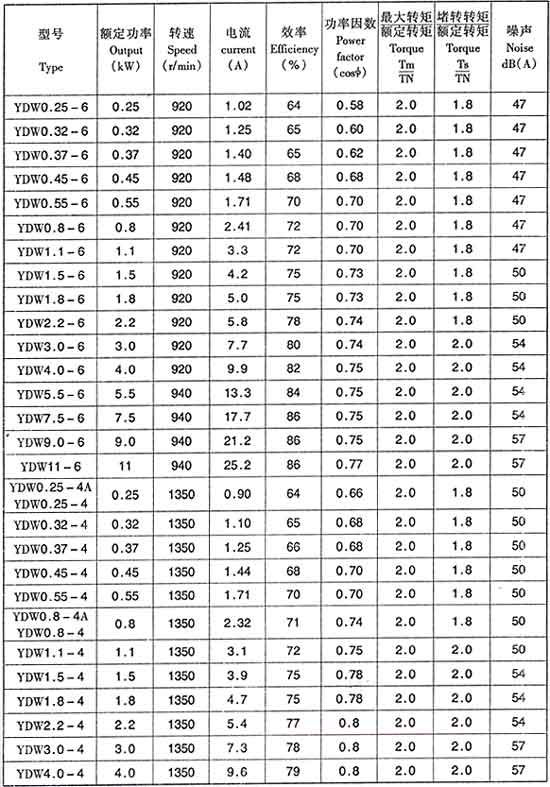 YDW系列低噪聲外轉子三相異步電動機具有軸固定外殼旋轉的特點,電機外殼可與風機葉輪直接連接,是臥式雙吸離心通風機和立式離心屋頂通風機最理想的配套動力源,廣泛應用于各類通風設備. 四、額定參數: