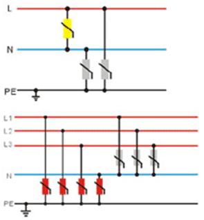 產品說明 單相、三相共差模系列電涌保護器主要用于電網干擾較嚴重的場所,能有效地抑制電網中的尖峰干擾及感應雷電波,它主要針對TT和TN-S配電系統所要求的相線、零線對地及相線對零線的共模、差模進行全方位保護,用于第一、二級的保護。 型號說明 產品接線圖