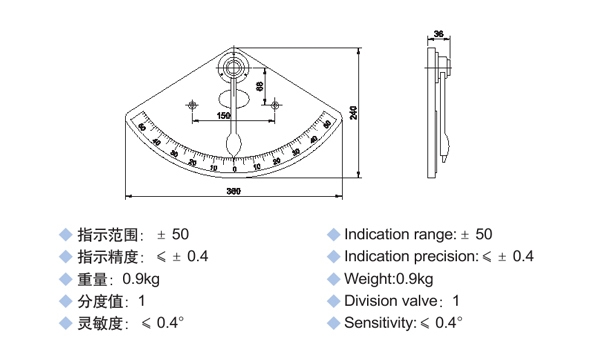 QB55-200型擺錘式傾斜儀 指示范圍:±50° 指示精度:≤±0.4° 重量:0.9kg 分度值1° 靈敏度≤0.4°