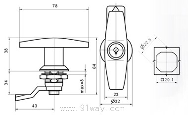 型號 MS305 止口高度 A:30-32 B:25.30.35.40 產品描述 短手柄式門鎖,結構功能與MS301相同.
