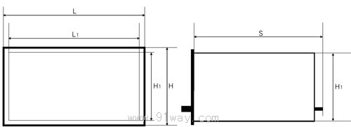 安裝尺寸 屏面安裝:屏面窗口開孔尺寸(L1×H1)