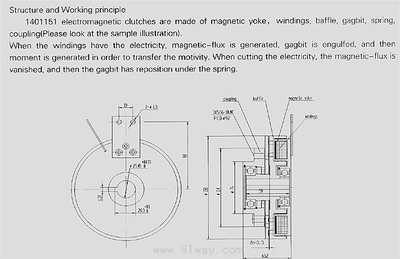 1401151電磁離合器有磁軛,線圈,擋板,銜鐵,彈簧,聯(lián)結(jié)組成(見附圖說明)。當(dāng)線圈通電時,磁通形成,銜鐵被吸合,完成傳遞動力。當(dāng)線圈斷電時,磁通消失,銜鐵彈簧作用下復(fù)位。
