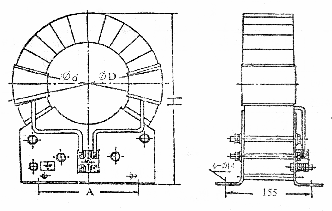 (5) LXM-1,LXM-2,LXM-3母排式零序互感器。該型互感器與DD11/60類繼電器配合使用,一次零序電流2.4A,二次電流0.06A,二次負荷10Ω。
