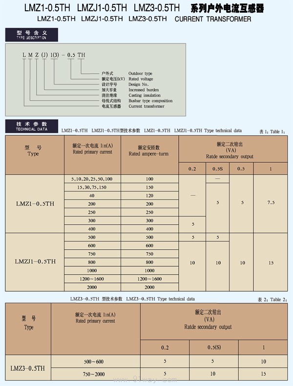 LMZ1-0.5TH,LMZJ1-05TH,LMZ3-0.5TH系列戶外電流互感器