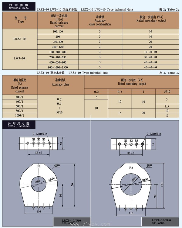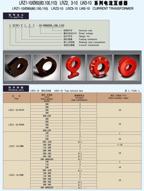 LRZ1-10/φ(80,100,110) LRZ2、3-10、 LW3-10系列電流互感器