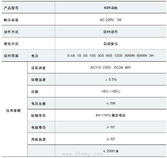 H3Y-2(4)型時間繼電器產(chǎn)品型號:H3Y-2(4) 技術(shù)參數(shù)