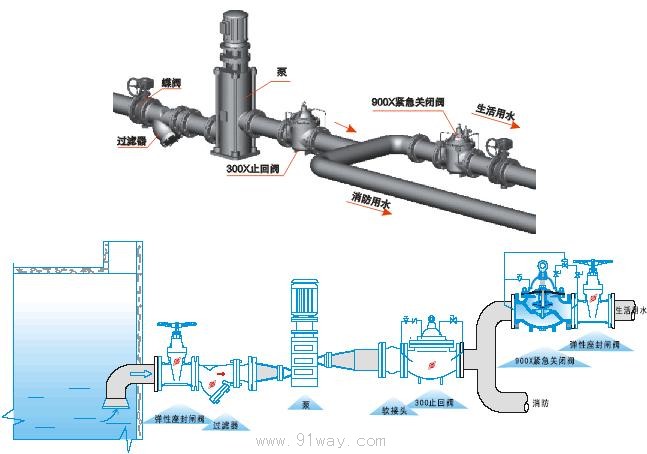 900X緊急關閉閥是一種用于消防用水與生活用水并聯的供水系統中,用來調配供水方向的閥門。當火災發生時,消防急需大量用水,立即切斷生活用水,確保足夠的消防用水;當消防停止用水壓力減小時,閥門自動打開,呈常開狀態,恢復生活供水。緊急關閉閥使系統無須另設專門的消防單獨供水管網,大大地節約了建設成本和用水量。閥門控制靈敏度高,安全可靠,調試簡便,使用壽命長。