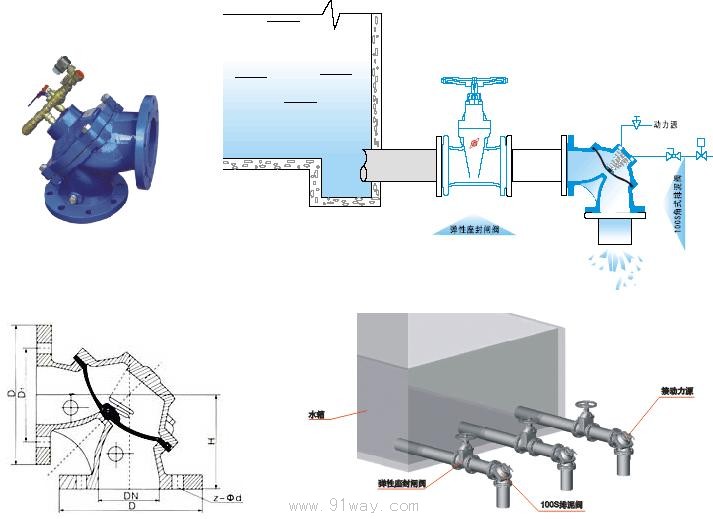 100S角式排泥閥內(nèi)部具有特殊強(qiáng)化隔膜片、不銹鋼彈簧等組成。具有開(kāi)啟快,關(guān)閉壓力低等優(yōu)點(diǎn),經(jīng)由外部液動(dòng)(氣動(dòng))控制管路,集中控制,啟閉主閥作用等特點(diǎn)。100S排泥閥主要適用于水廠、水處理廠,做為排除水池內(nèi)泥沙及污物。
