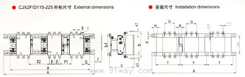 HB系列一字形和直角形星三角轉(zhuǎn)換接觸器直角形安裝