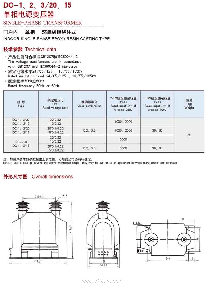 DC-1/15KV型單相電源變壓器